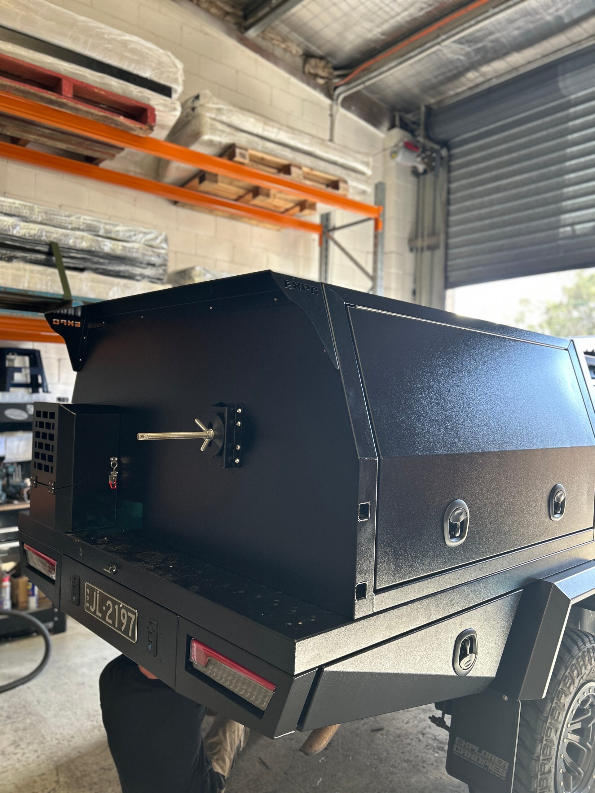 This spoiler is designed to perfectly complement our canopies & service bodies. Made from strong 3mm flat aluminium and finished in a matching black powder coat. Add this on to any of our canopy packages as an option to complete the look of your setup.