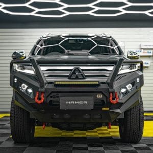 Hamer King series Plus bull bar is a bumper replacement bull bar that has been specifically designed to fit Mitsubishi Pajero Sport QG ( 2024 – Present ). Not only adding a tough look to your vehicle, Hamer bull bar protects the front of your vehicle during an unexpected event. Stay confident in every journey you make.