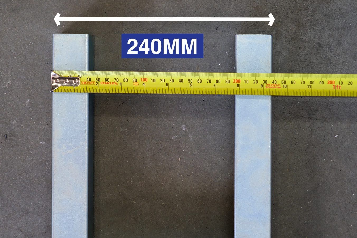 - 40mm Box Section Lifting Prongs (channels must be larger than 40mm)