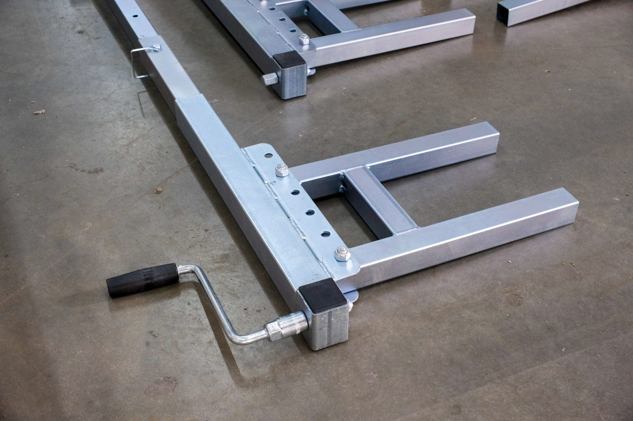 To use simply insert the Jack Off Legs into the 160mm canopy mounting holes on your canopy and then proceed to use the inbuilt jacks easy winding mechanism on each leg to lift the canopy off your Ute bed. Made from heavy duty thick galvanised box steel with fully welded and reinforced joints, these strong legs are capable of supporting up to 500kg of total weight and feature a large oversized foot pad for increased stability when lifting and holding your Aluminium Ute Canopy.