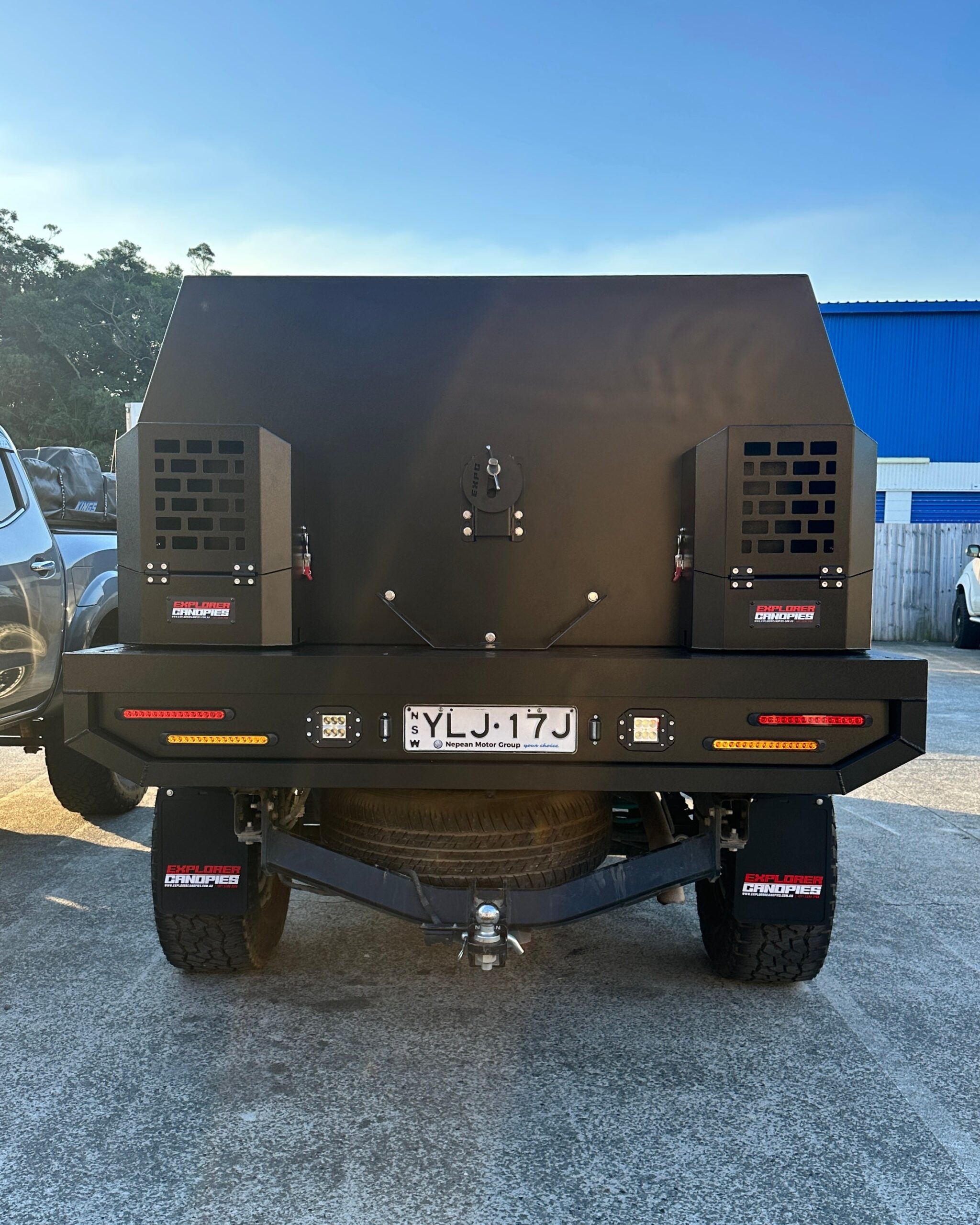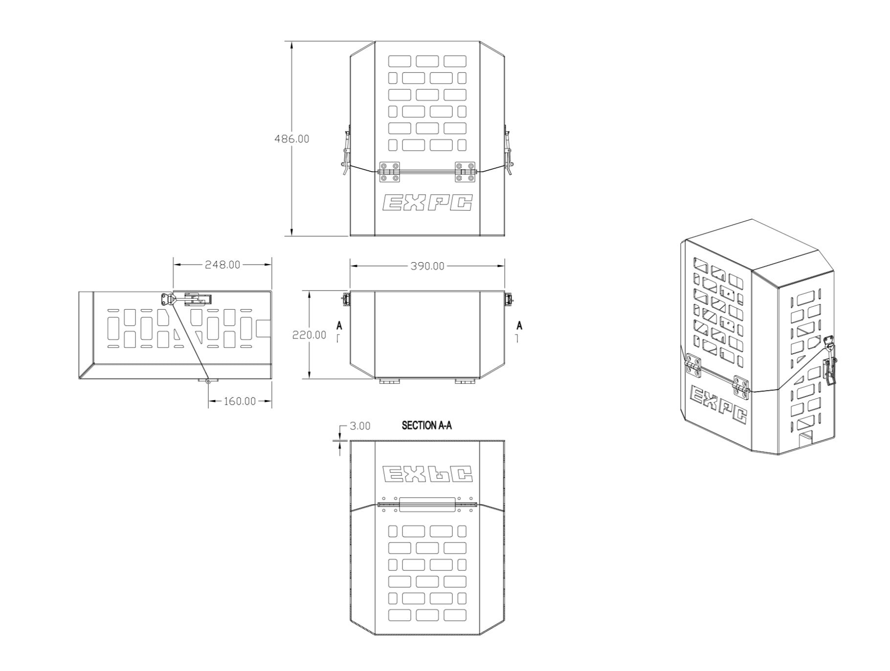 Secure your Jerry Can with this lockable holder in black. Made from strong 3mm aluminium flat plate and powder coated for additional durability, laser cut with vents. The included lockable latches provide extra protection. Perfect for long term storage.