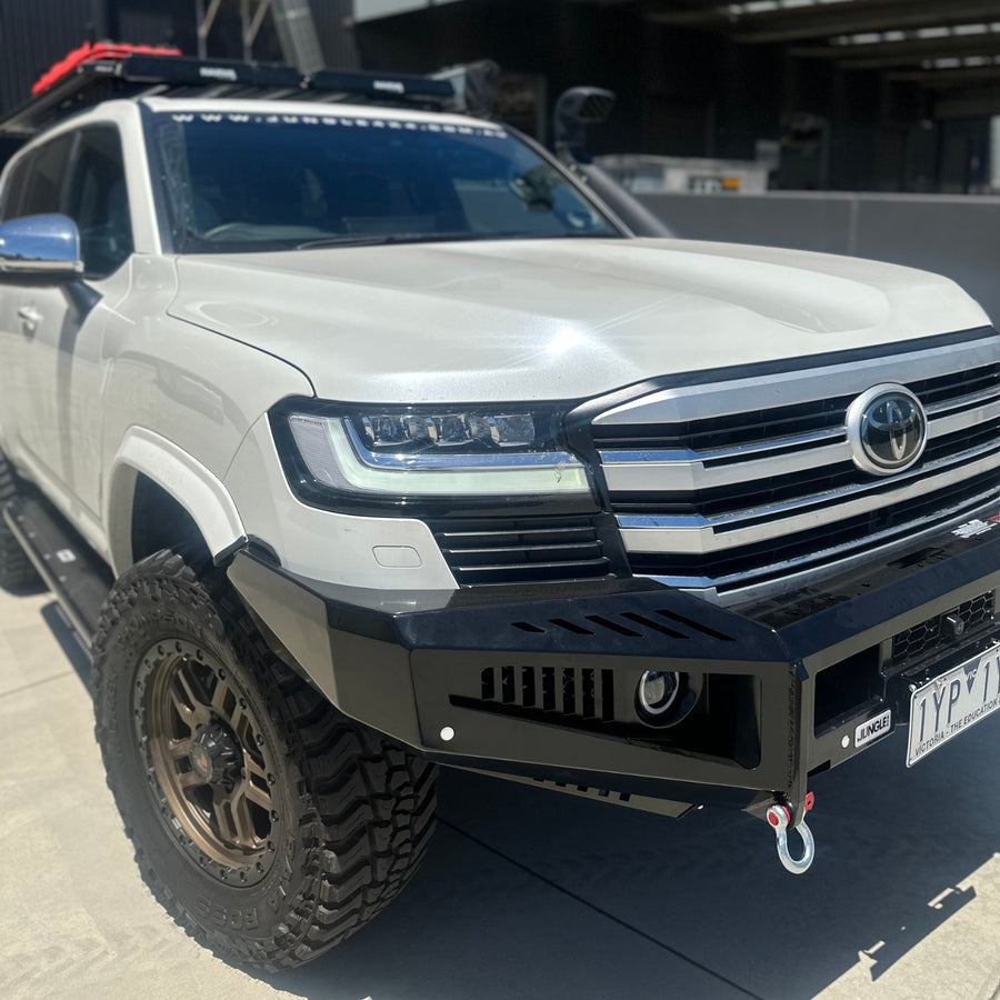 The Sports Jungle 4×4 Bull Bar, designed for Toyota Landcruiser 300 Series+, offers the following impressive features: