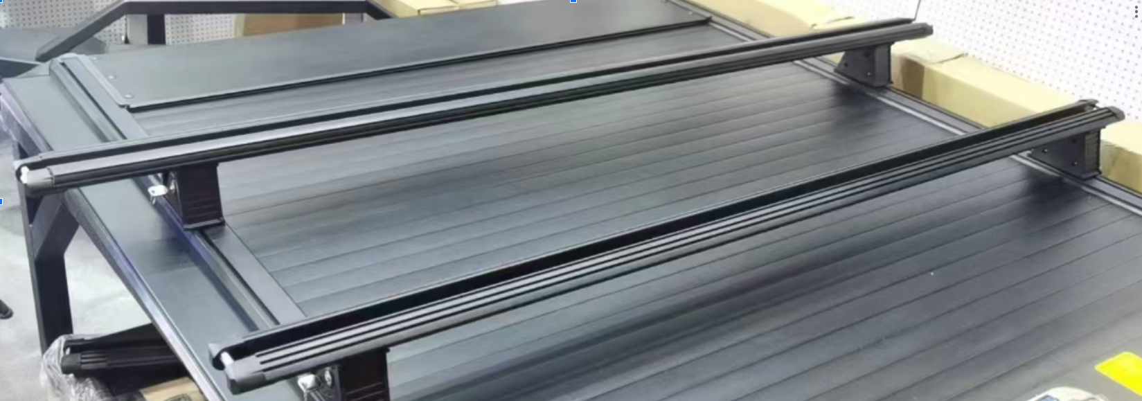 Premium Universal Aluminium Lockable Crossbars for roller shutter or retractable tonneau cover with a matte black finish for your ute tub to carry your luggage, tools, ladder, or whatever you wish.